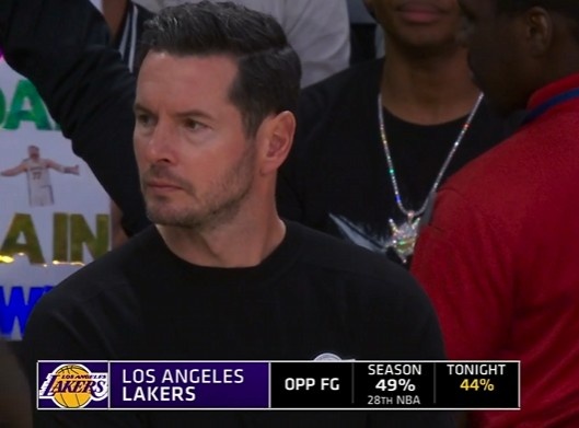 不容易!湖人限制对手命中率49%联盟倒数第3 目前老鹰只有44%