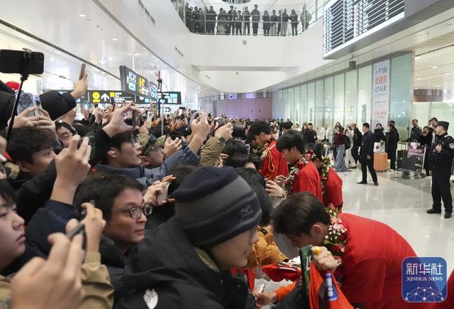 ↑球迷在机场欢迎中国队归来。新华社记者谢晗摄