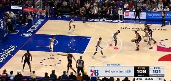奋力追赶!76人1分25秒内外开花打出9-0攻击波 追到个位数分差